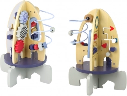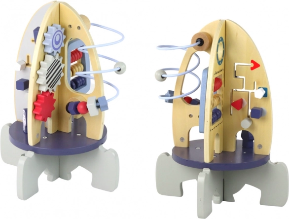 Ovaj multifunkcionalni aktivni centar u obliku rakete pretvara igru u zabavno učenje. Djeca će pomicati šarene perlice u labirintu, okretati zupčanike i iskušavati prvo računanje – sve to potiče koordinaciju oko–ruka, strpljenje i koncentraciju. Svemirski motiv dodatno budi maštu i znatiželju.