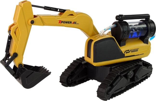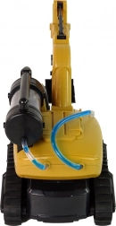 Gumene gusjenice osiguravaju stabilno i glatko kretanje po različitim podlogama, dok zvučni efekti i vizualni element s plavom tekućinom na gornjem dijelu stroja daju igri autentičnu atmosferu gradilišta. Ergonomski upravljač dobro leži i u malim rukama.