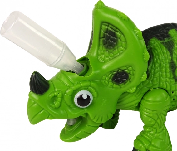 Dinosaur je dizajniran jednostavnom konstrukcijom, zahvaljujući kojoj vaše dijete može lako otkriti vlastitog dinosaura! Ispod rogova nalazi se poseban otvor u koji je dovoljno uliti nekoliko kapi vode, a para će početi izlaziti iz čeljusti. Ova je funkcija u potpunosti sigurna za djecu.