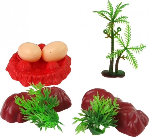 Dodatno, tu su tri mala dinosaura koji igri daju dinamiku i raznolikost. Dodaci poput dva kamena, dva grmića i dvije jajne ljuske pružaju autentičnu pozadinu za igru, a baza s njima daje scenariju dojam stvarnosti. Jedno stablo upotpunjuje set i potiče stvaranje priča u prirodnom okruženju.