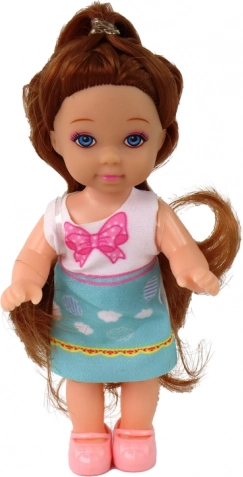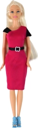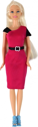 Figurica učiteljice s dugom plavom kosom i ružičastom elegantnom haljinom s crnim remenom.