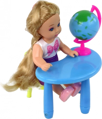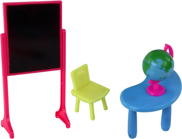 Nadalje, sadrži stolić i stolicu, na kojima lutke mogu udobno sjediti, te tako savršeno oponašati školsko okruženje.