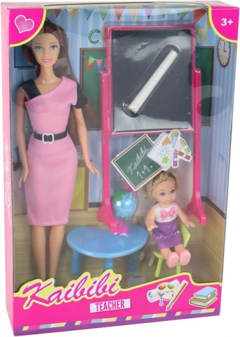 Uronite u svijet obrazovanja s ovim prekrasnim školskim setom koji donosi kreativne igre i scenarije povezane sa školom. U pakiranju nalazite učiteljicu s dugom smeđom kosom i elegantnom ružičastom odjećom, koja je spremna podučavati. Uključeno je i učenik s dugom plavom kosom, obučen u bijelo-ljubičaste haljine. Obje lutke se mogu stilizirati i dodijeliti im različite uloge.
