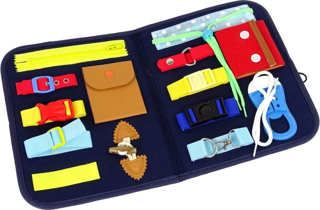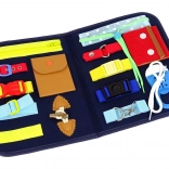 Ploča nudi razne vrste kopčanja i aktivnosti koje razvijaju finu motoriku i podržavaju samostalnost djece.