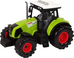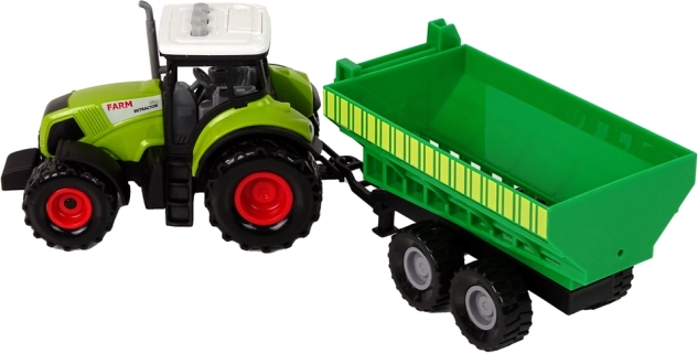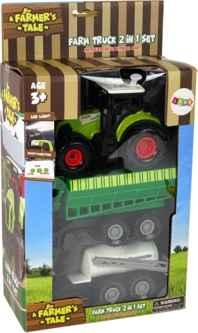 Igračka traktor s prikolicom i poljoprivrednim strojevima nudi kompletnu mini farmu! Ovaj realističan model omogućuje djeci upoznati kako funkcionira rad na poljoprivrednoj farmi. Traktor je opremljen s tri funkcijska gumba na krovu kabine, koji upravljaju zvukovima motora, vožnjom unatrag i trubom te istodobno aktiviraju LED svjetla.