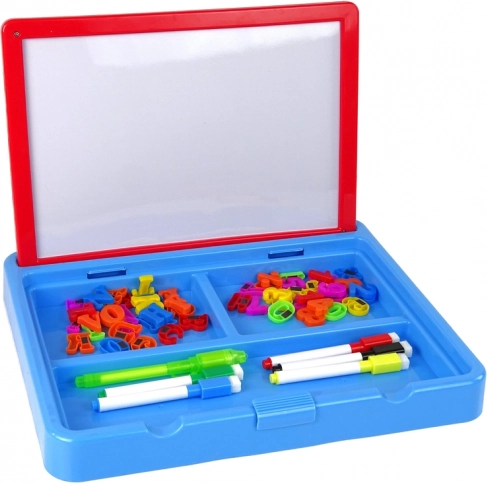 Dio seta je i praktična kutija za pohranu s 3 pretinca za flomastere, magnetska slova i brojke. Ploča je izvrsno edukativno pomagalo za predškolce: razvija kreativnost, koncentraciju i motoriku te zahvaljujući magnetima pomaže u usvajanju abecede i matematike.