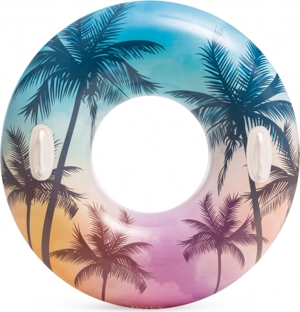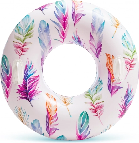 Uživajte u ljetu s plivaćim kolutom na napuhavanje promjera 97 cm s dvjema ručkama i svježim tropskim izgledom. Promjer 97 cm, 2 čvrste ručke, maks. nosivost 80 kg i debljina materijala 0,25 mm osiguravaju udoban i stabilan odmor i zabavu u vodi. Na izbor su 2 atraktivna motiva – listovi palme ili flamingosi.