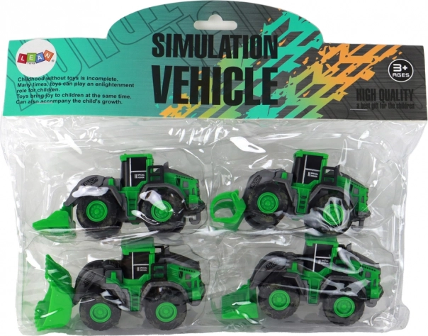 Otkrijte set od četiri zelena traktora koji donose vrhunsku zabavu. Svaki traktor ima realističan izgled nadahnut stvarnim poljoprivrednim strojevima, što će razveseliti svakog malog farmera.