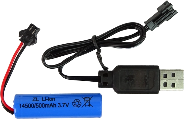 Dio paketa je punjiva baterija 14500/500mAh 3.7V s USB kabelom za jednostavno punjenje.