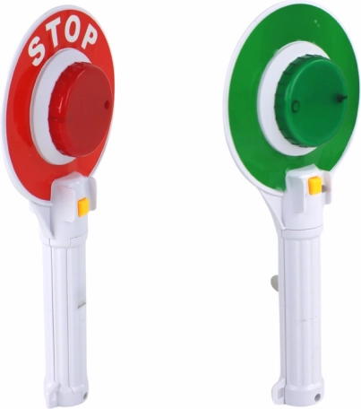 Ova dječja policijska STOP palica odličan je dodatak kostimu i samostalna igračka za svakodnevnu igru. Dvostrana izvedba s crvenom i zelenom stranom vjerno oponaša stvarno upravljanje prometom, a svjetlosni efekti koje pokreću tipke na svakoj strani daju igri realističnu dimenziju. Izdržljiva plastika i udobna bijela ručka osiguravaju jednostavno i sigurno korištenje.
