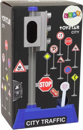 U setu se nalaze sivi prometni semafori dimenzija 13 cm x 9 cm x 23 cm. Ovi semafori nisu samo vizualno realistični, već i funkcionalni – napajaju se s dvije baterije 2x1,5 V R6 AA, koje su uključene u set. Semafori proizvode zvuk sličan zvuku stvarnih svjetala na raskrižjima. Osim toga, nakon uključivanja naizmjenično svijetli crveno za vozila i zeleno za pješake i obrnuto, baš kao u stvarnosti. Ukrašeni su s dva znaka: znakom STOP i naredbom za vožnju ravno ili desno. Na postolju na kojem su svjetla postavljena dodatno je nacrtan pješački prijelaz, što unosi element praktičnog učenja.