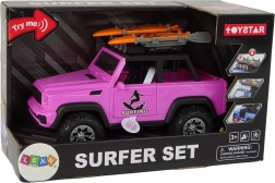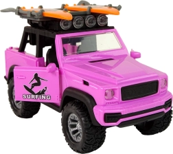 Stilski ružičasti terenski automobil u mjerilu 1:14 oduševit će male avanturiste motivom surfanja. Nudi pogon na zamašnjak, svjetlosne i zvučne efekte, otvarajuća vrata te na krovu nosače za daske za surfanje s veslima. Izdržljiva izvedba s velikim kotačima idealna je za maštovitu igru kod kuće i na otvorenom.
