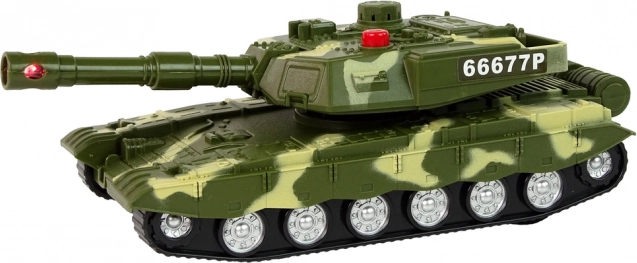 Ovaj detaljno izrađen tenk ističe se inercijskim pogonom za vožnju naprijed i natrag, mogućnošću okretanja na mjestu i pokretnom cijevi. Pritiskom crvenog gumba oživi svjetlosnim i zvučnim efektima motora i pucnjave, stvarajući autentičnu atmosferu borbene misije.