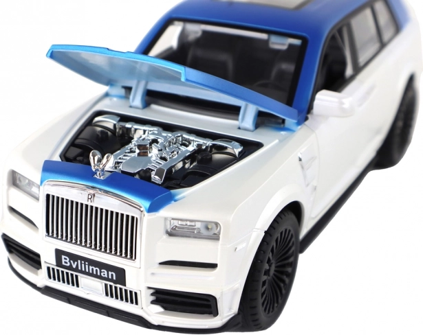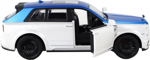 Bijelo-plava karoserija sa srebrnim detaljima i funkcionalnim vratima daje modelu autentičan izgled kao kod pravog SUV-a.