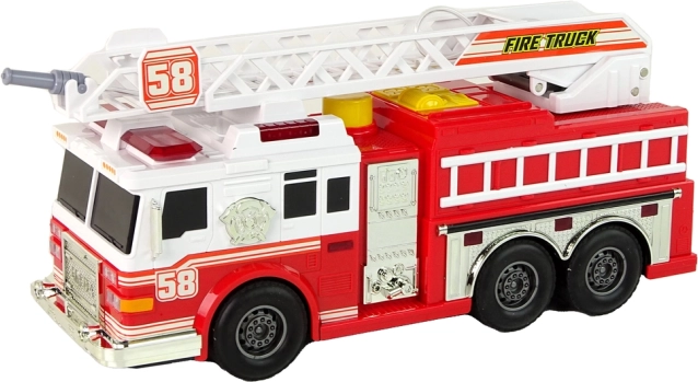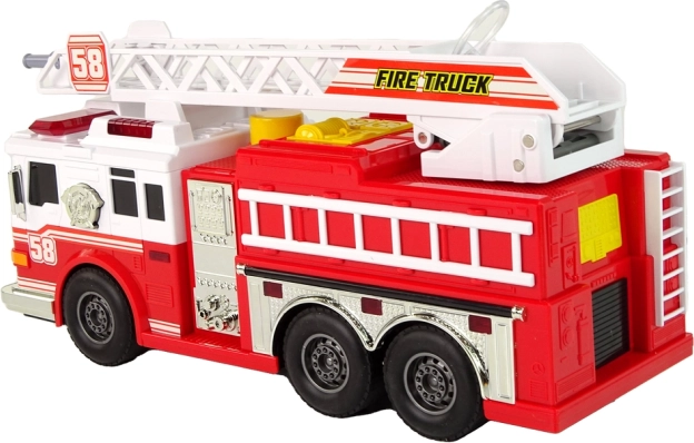 Ovo detaljno izrađeno crveno vatrogasno vozilo uvlači djecu u svijet spasilaca. Nudi funkcionalne elemente poput izvlačnih i rotirajućih ljestvi, svjetlosnih i zvučnih efekata, pa čak i ulaza za vodu s aktivacijom pomoću velike žute tipke za simulaciju gašenja.