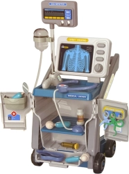 Ovaj plavi liječnički set omogućuje djeci da se užive u ulogu pravog liječnika. Funkcionalni stetoskop sa zvukovima daje igri autentičnost, dok prijenosna kolica drže sve alate na jednom mjestu i olakšavaju kretanje po sobi. Zahvaljujući ukrasnim naljepnicama djeca mogu personalizirati svoj set.