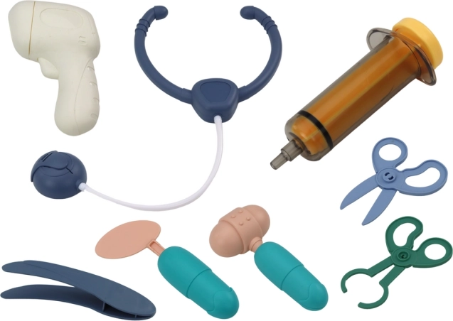 Set sadrži sve potrebno za osnovnu „ordinaciju“: špricu, škare, stetoskop i druge dodatke. Izrađen je s naglaskom na sigurnost i udovoljava standardima CE i EN71, pa je prikladan za djecu od 3 godine naviše.