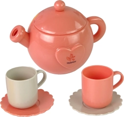 U pakiranju ćete pronaći sve za stilsko posluživanje: 2 šalice, 2 tanjurića, čašu, žličicu i simpatične dekoracije – jagodu, limun i čajnik. Zahvaljujući kompaktnim dimenzijama, set je lako prenosiv i odlično pristaje u dječju sobu.
