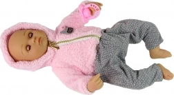 Otkrijte čar igre njege s realističnom bebicom koja osvaja svojim dragim izrazom i detaljima. Odjeću čine mekana ružičasta majica i sive hlače s točkicama, koje se lako kombiniraju s drugim komadima. Lutka ima zglobne udove, pa je djeca mogu lako posjedati, polegnuti i stvarati razne prizore.