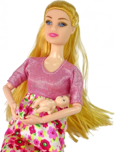 Ova lijepa trudna lutka s dugom plavom kosom i šarmantnom ružičastom haljinom s cvjetnim motivom donosi u igru čaroliju i stil. Trbuščić se lako može okrenuti na ravan. Idealna je za djevojčice koje vole lutke i stvaranje čarobnih priča.