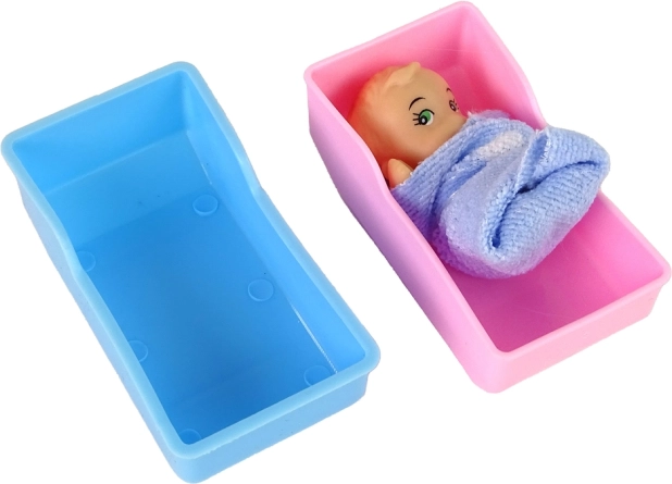 Set sadrži bebu, dvije kadice i liječničku stanicu, koja omogućuje uloge i maštovito zdravstveno okruženje.