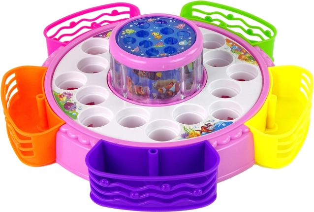 Zabavna dječja igra pecanja ribica se okreće, emitira svjetlosne efekte i zvukove te donosi sate veselja za cijelu obitelj. Zahvaljujući pet obojenih košarica može igrati do pet igrača. U kompletu su male i velike ribice te različiti štapovi uključujući i magnetne za lako pecanje. Izdržljiva plastična izrada, baterijsko napajanje i poticanje fine motorike i koordinacije čine ovu igru idealnim izborom za djecu od 3 godine naviše.
