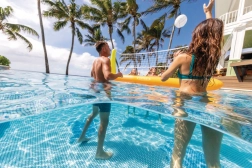 U pakiranju se nalaze plutajući okvir, mreža, nafukavajuća odbojkaška lopta i zakrpa za popravak – samo napušite i igrajte.