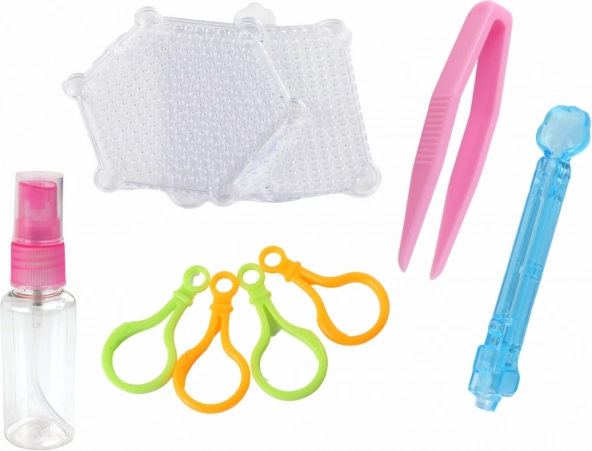 Kreativni set vodenih perlica za male umjetnike nudi 8 živopisnih boja, dvije šablonske podloge (kvadrat i šesterokut), raspršivač i pribor za jednostavno stvaranje. Dovoljno je pošpricati vodom i perlice se spoje bez peglanja. Odličan izbor za razvoj fine motorike, mašte te izradu privjesaka i slatkih motiva praščića.