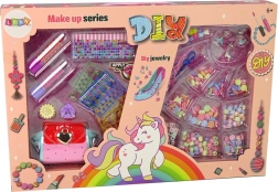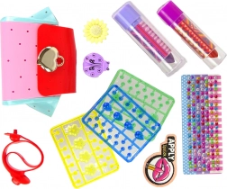 U setu se dalje nalaze šareni cirkoni koje možete koristiti za ukrašavanje kreativnih projekata te dva simpatična prstena u obliku cvijeta i bubamare, koji ne samo da dodaju sjaj nego i eleganciju. Osim toga, sadrži raznobojne perlice različitih oblika, dvije ružičaste niti, plavu uzicu i tri različita privjeska za izradu personaliziranih narukvica i ogrlica.
