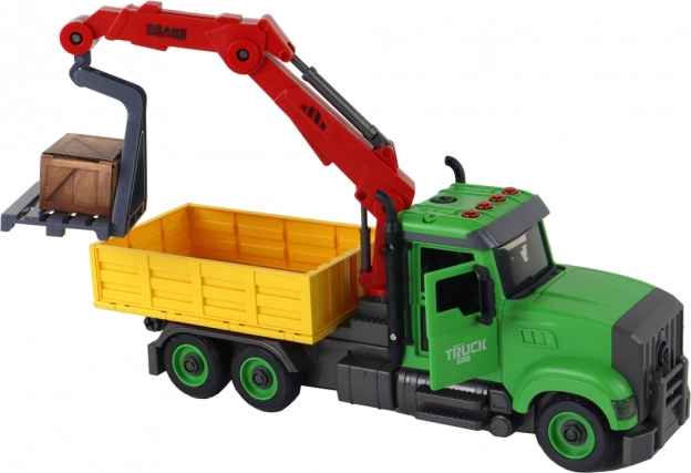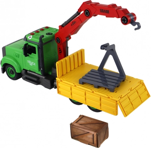 - Kiperski kamion s dizalicom, odvijač s dvama bitovima, paleta s kutijom, baterije (3 × 1,5 V)
