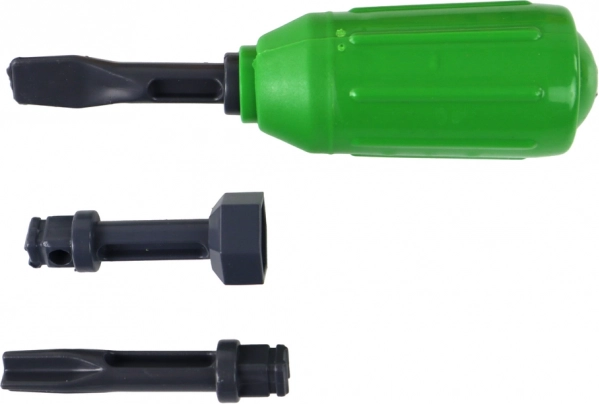 Dio seta je odvijač s dvjema izmjenjivim nastavcima. Djeca vježbaju finu motoriku, logiku i strpljenje pri montaži i demontaži vozila.