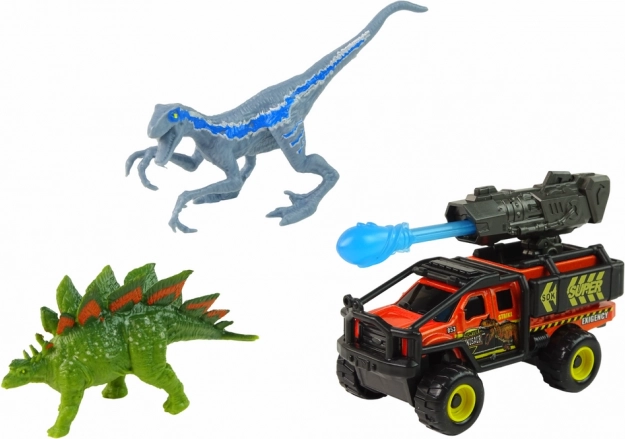 Ovaj set vodi djecu u fascinantni svijet dinosaura. U njemu se nalaze velociraptor u plavo–smeđoj boji s prugama za autentičan izgled i stegosaur u zelenoj boji s izrazitom narančastom „grivom” na leđima. Dio seta je i moderno terensko vozilo opremljeno raketnim bacačem s pomičnim projektilom za još više akcije.