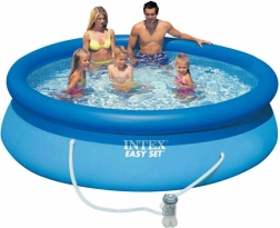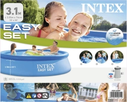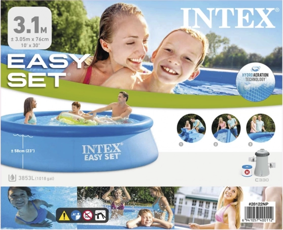 Uživajte u ljetu s obiteljskim bazenom INTEX Easy Set promjera 305 cm i visine 76 cm. Zahvaljujući nafukavajućem gornjem obruču njegova je instalacija brza i jednostavna, čvrsta troslojna folija jamči izdržljivost, a dio pakiranja je i filtarska pumpa s tehnologijom Hydro Aeration Technology za čistu i bistru vodu.
