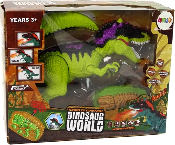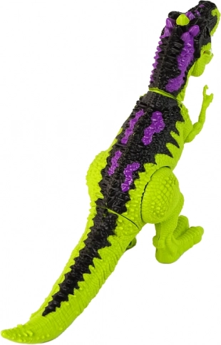 Dinosaur na daljinsko upravljanje u zelenoj boji je dinamičan dinosaur koji radi na 3 AA baterije od 1,5 V (nisu uključene, umeću se u rep), zahvaljujući čemu se ponaša realistično. Emitira crveno svjetlo i karakteristične zvukove dinosaura, zbog čega izgleda prijeteće.