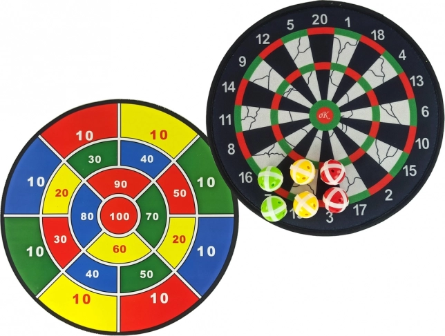 Dvostrana meta omogućuje sigurnu igru zahvaljujući mekoj površini i plastičnim strelicama s zaobljenim vrhovima.
