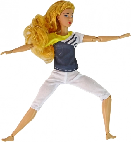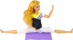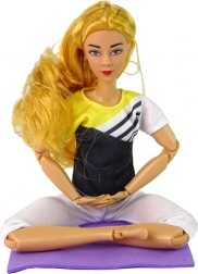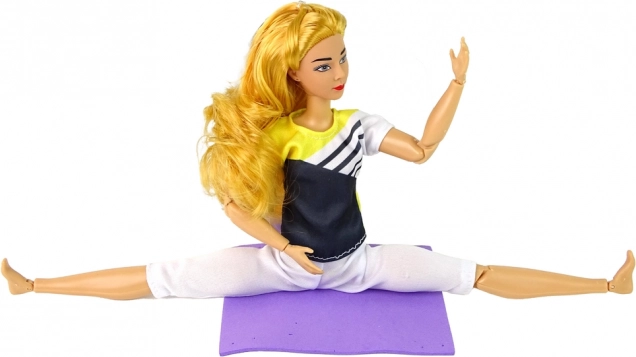 Kosu je moguće češljati i oblikovati, a sportska odjeća naglašava tematsku igru. Podloga 12 × 10 cm omogućuje stvaranje vlastitog mini joga studija.