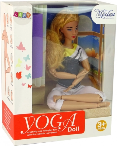 Ova zglobna jogijska lutka potiče kreativnu igru, kretanje i maštu. Zahvaljujući fleksibilnim zglobovima i rotaciji od 360° lako prelazi između različitih asana – od sjeda, preko istezanja pa sve do špage. Dugu plavu kosu moguće je češljati i uređivati, pa se svako vježbanje pretvara u stilski nastup.