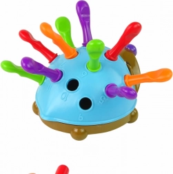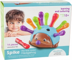 Ova interaktivna slagalica s ježićem idealna je za prvo učenje kroz igru. Djeca umeću 12 plastičnih bodlji u okrugle otvore na leđima ježa te pritom uče brojeve 1–12, prepoznaju boje i razvijaju koordinaciju ruka–oko i koncentraciju. Zahvaljujući kompaktnim dimenzijama ježić dobro leži u ruci, a rukovanje bodljama je jednostavno.