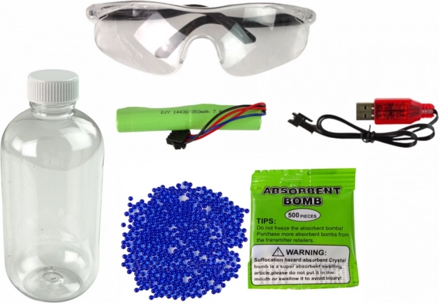 U sklopu seta dolaze i zaštitne naočale koje osiguravaju sigurnost tijekom gađanja. Osim toga, u setu se nalaze i kuglice te spremnik, tako da imate sve što vam je potrebno za uživanje u realističnom iskustvu.