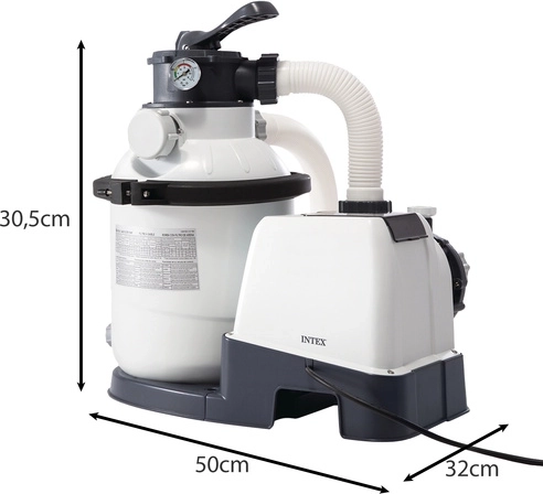 INTEX pješčana filtracija idealan je odabir za srednje i velike nadzemne bazene. Visok protok 5700 l/h i sustav Hydro Aeration značajno poboljšavaju cirkulaciju i oksigenaciju vode, što se odražava na njezinoj prozirnosti i udobnosti pri kupanju. Izdržljiva konstrukcija spremnika otporna na koroziju, pregledan manometar i rotirajući prirubnički spoj olakšavaju instalaciju i održavanje.
