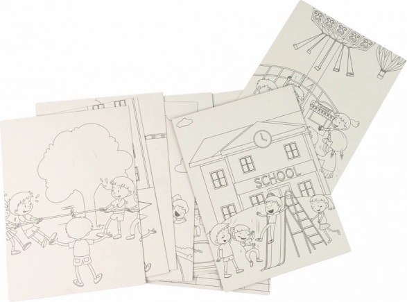 Ovaj čarobni set donosi djeci radost stvaranja i učenja. Svaku od 9 sličica dovoljno je nježno ostrugati priloženim drvenim štapićem i ispod površine će se pojaviti veseli i šareni školski prizori. Idealna aktivnost za dom, putovanja i vrtić.