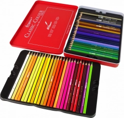 Bojice su smještene u robusnoj metalnoj kutiji u dva sloja crvene boje dimenzija 28 cm x 19 cm x 2,5 cm, što ih čini praktičnim rješenjem za nošenje i skladištenje. Idealan alat za one koji cijene urednost i mobilnost.