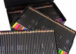 Ovaj opsežan set nudi širok spektar boja za crtanje, sjenčenje i miješanje. Čvrsta metalna kutija štiti olovke na putu i kod kuće, a promišljena podjela na tri razine olakšava brz odabir nijansi. Svaka olovka ima gladak, ujednačen trag i udobno prianjanje zahvaljujući crnom laku.