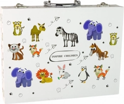 Kompletan likovni set za male umjetnike u čvrstom bijelom kovčegu sa životinjama nudi sve što djeci treba za slikanje i crtanje. Sadrži 68 dijelova – od pastela, olovaka i flomastera s dvostrukim vrhom do boja, kistova i paleta. Potiče kreativnost, finu motoriku i radost stvaranja kod kuće i na putu.