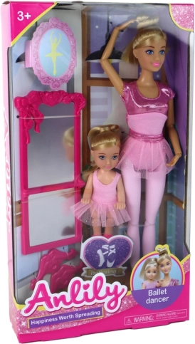 Otkrijte čarobni baletni svijet s setom ANLILY – balerina mama i njezina kćerkica u usklađenim ružičastim kostimima. Dio seta je i veliko ružičasto ogledalo za vježbanje poza i nastupa. Ovaj set potiče kreativnu igru, maštu i finu motoriku zahvaljujući pokretnim udovima i detaljnim dodacima.