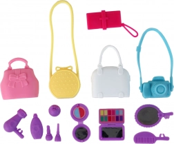 Lutka u haljini, dodaci za šminkanje i frizure, 5 torbica