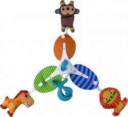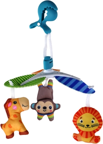 Vrtić se pričvršćuje pomoću posebne kvačice, što omogućuje njegovo jednostavno i sigurno pričvršćivanje na bilo koje mjesto. Možete ga postaviti na krevetić, kolica ili nosiljku, i tako pružiti djetetu radost od šarenih životinja kad god želite.
