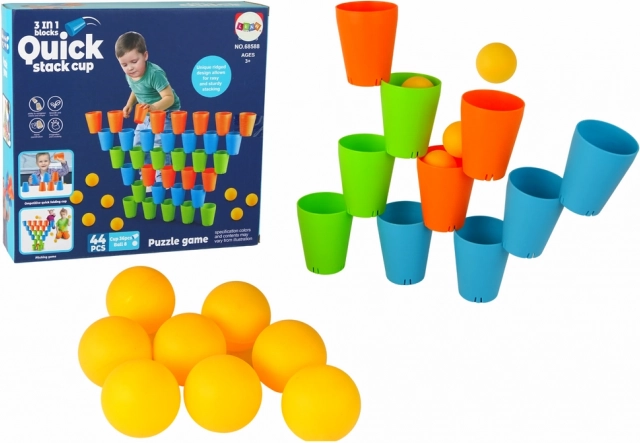 Set Slaganje čaša 3 u 1 je idealan za razvoj manuelnih vještina i logičkog razmišljanja djece. Čaše imaju posebne nagibe za lako spajanje i stvaranje konstrukcija, potičući kreativnost i ciljanu upotrebu.