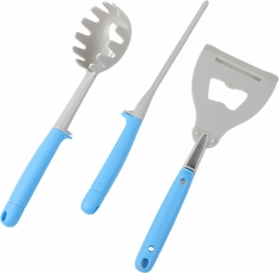 Set uključuje alate poput žlice za tjesteninu, gulilice i brusila, što omogućuje potpunu simulaciju kuhinjske pripreme.