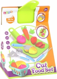 Naš dječji set povrća za rezanje s daskom i dodacima savršen je način za razvoj vještina i mašte kod djece. Set sadrži četiri vrste povrća: krumpir, mrkvu, luk i rajčicu, koje se mogu sigurno rezati priloženim plastičnim nožem. Dopunjen je košaricom za kupnju i korisnom opremom kao što su žlica za tjesteninu, gulilica i brus za nož.